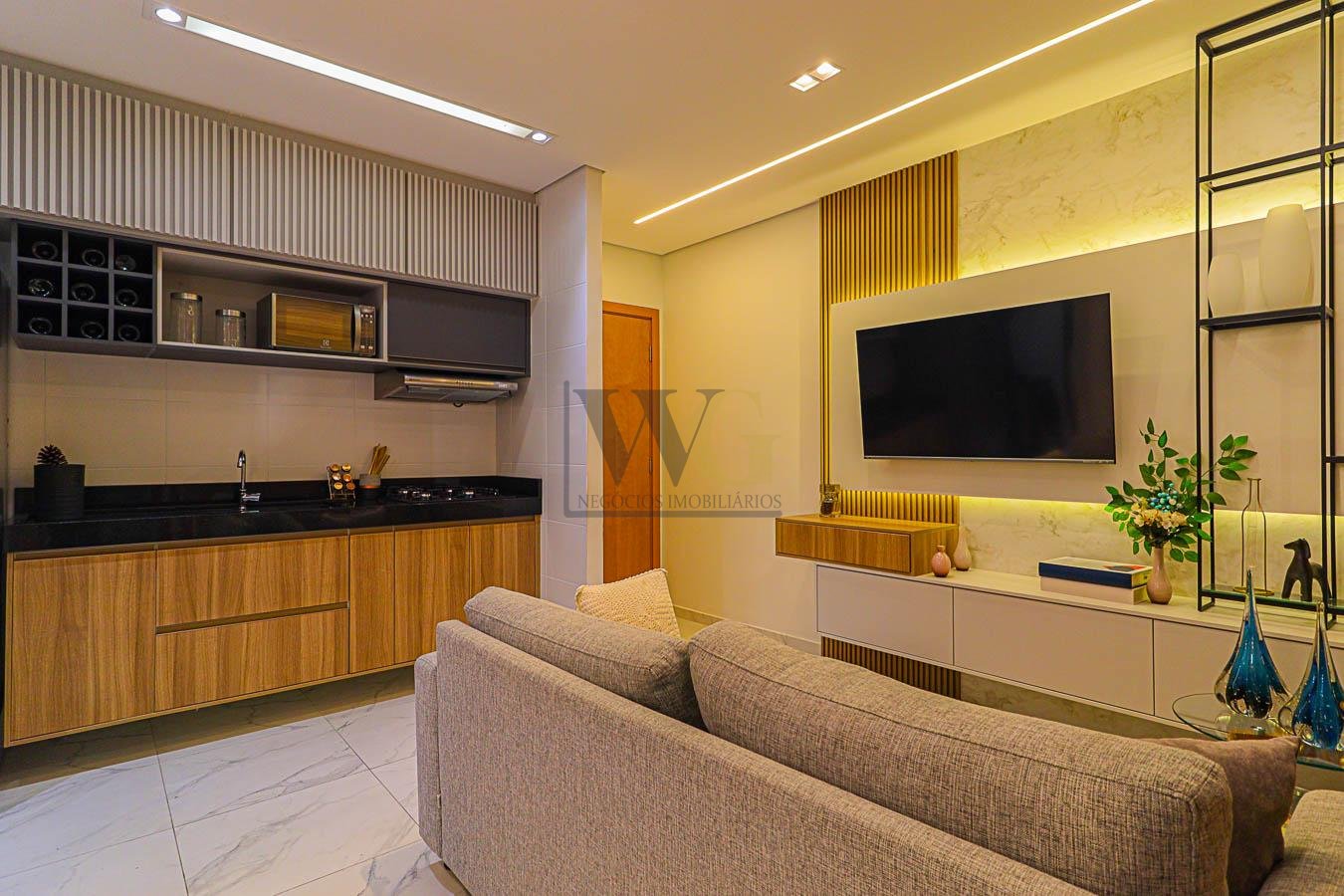 * Apartamentos de 36,74m² a 44,43m², com 2 quartos, sala, cozinha e banheiro;