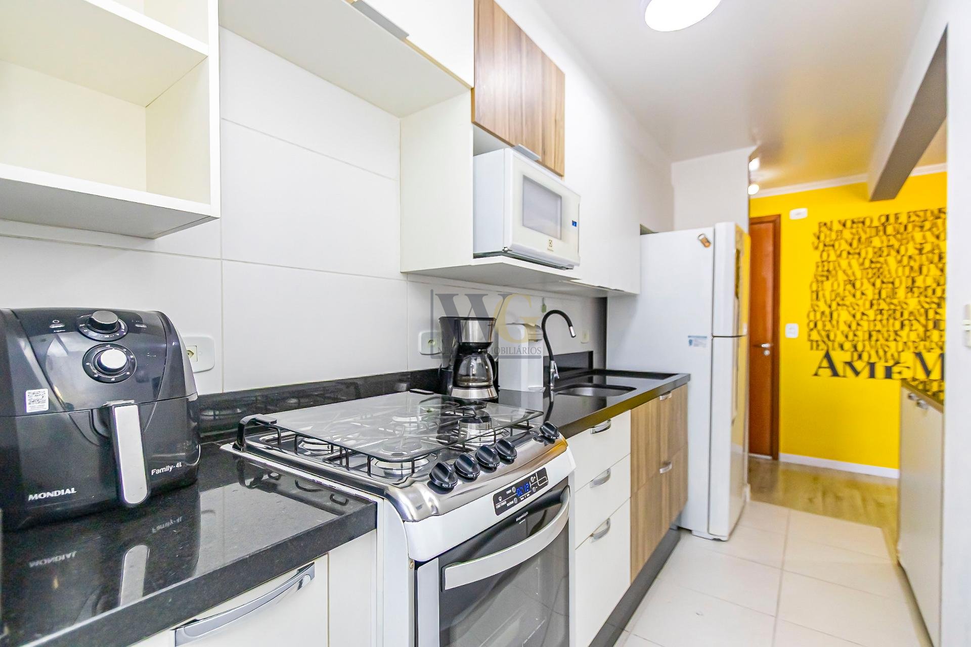 Pronto para morar, a unidade tem um interior moderno e funcional, sendo entregue com móveis planejados em todos os ambientes e parte da mobília.