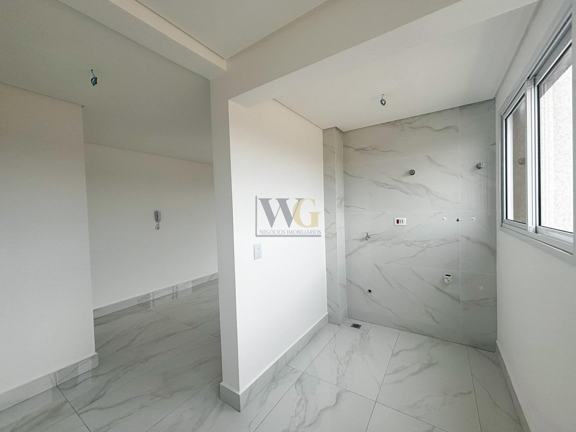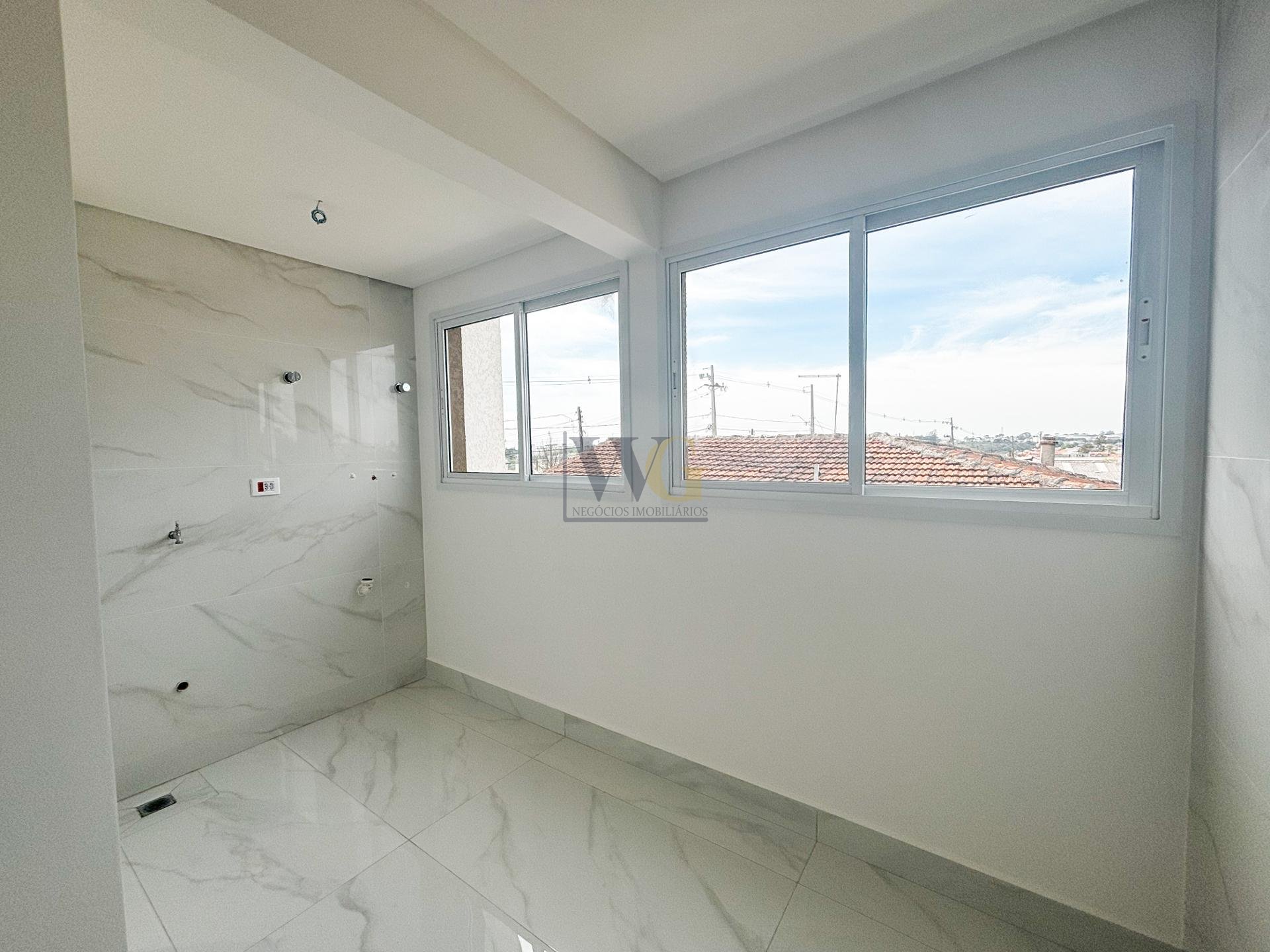 Cozinha entregue com revestimentos nas áreas frias, infraestrutura hidráulica e elétrica prontas para instalação, além de ventilação natural