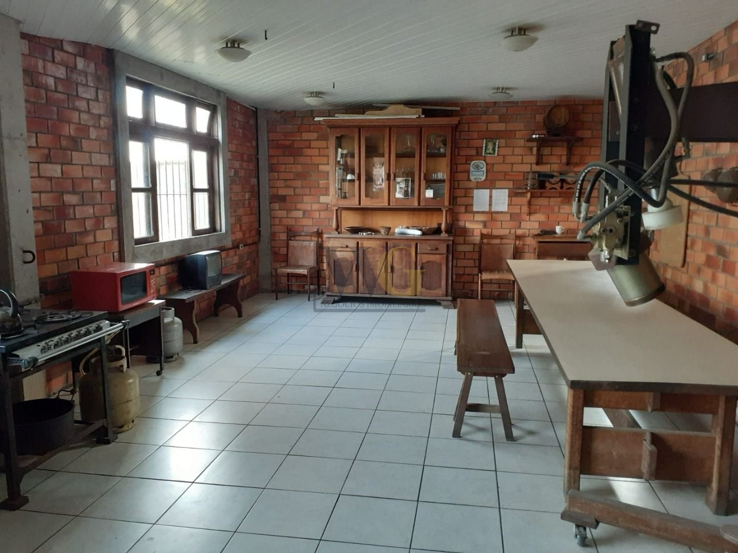Área de convivência: Refeitório equipado com fogão à lenha, mesa e cadeiras. Banheiros feminino e masculino.