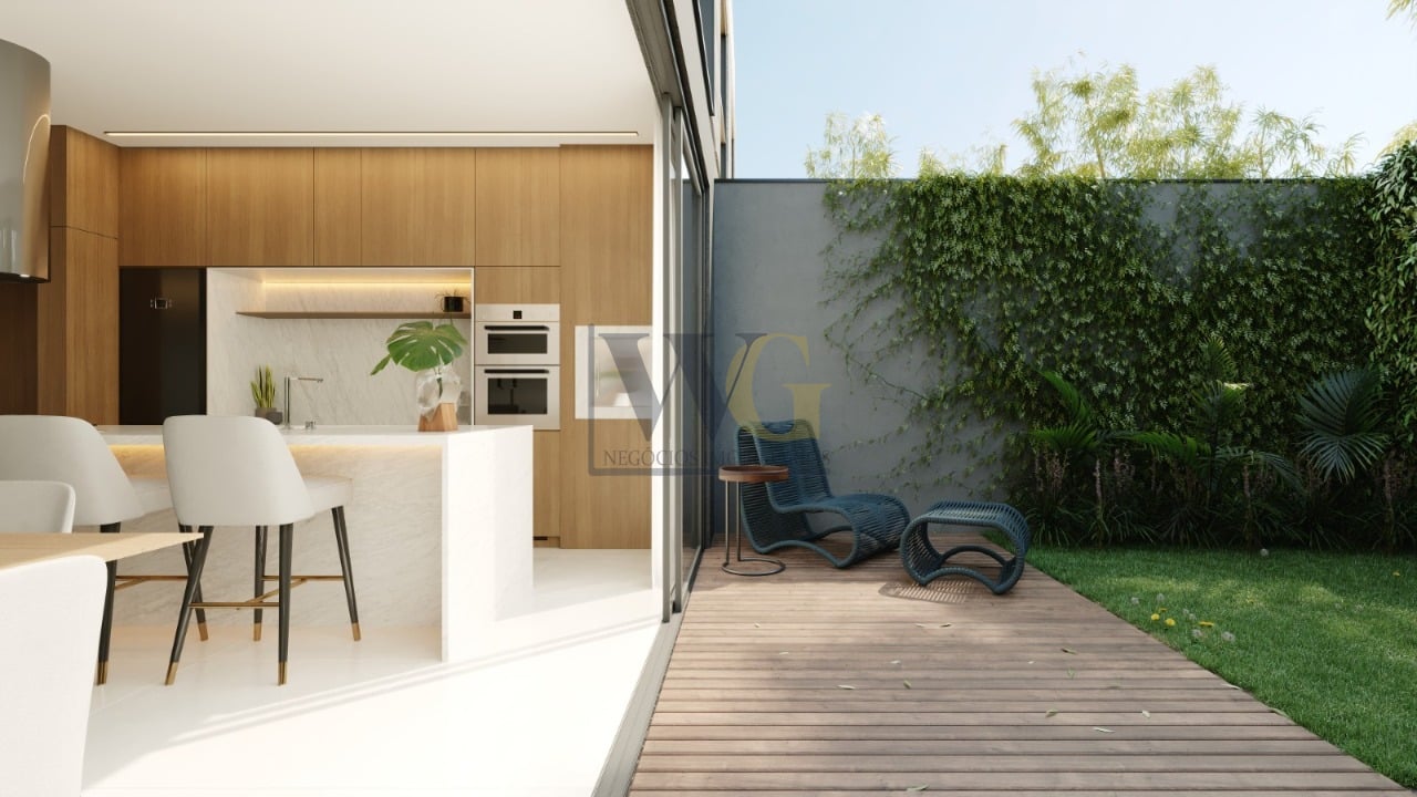 Primeiro Pavimento: Living/sala de estar integrada com área gourmet e jantar, conceito aberto com acesso ao garden privativo proporcionando um visual natural com a tranquilidade esperada por quem escolhe esse tipo de imóvel.