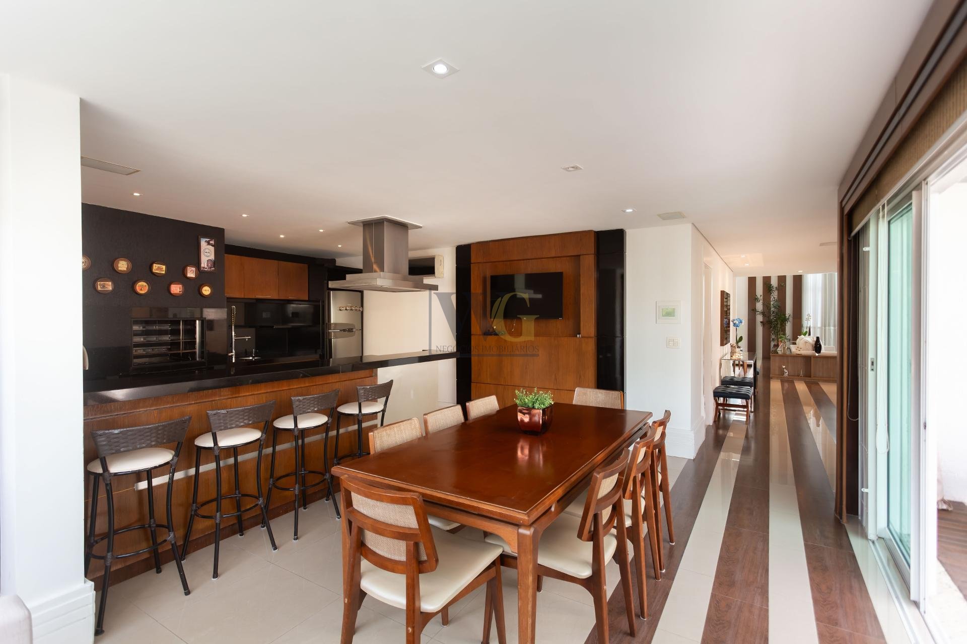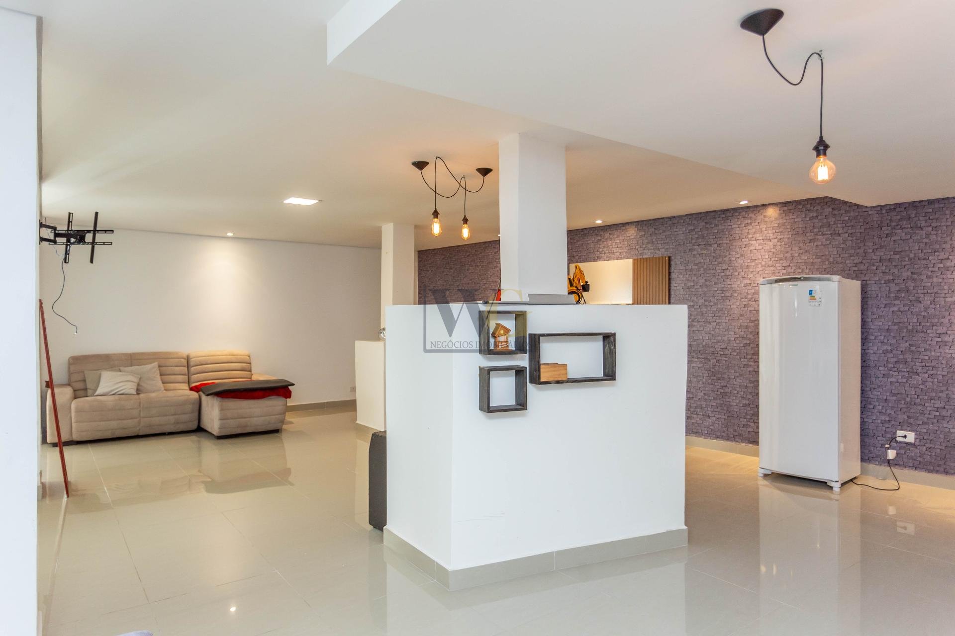 - Living com 3 ambientes e lareira, perfeito para receber com estilo e conforto.