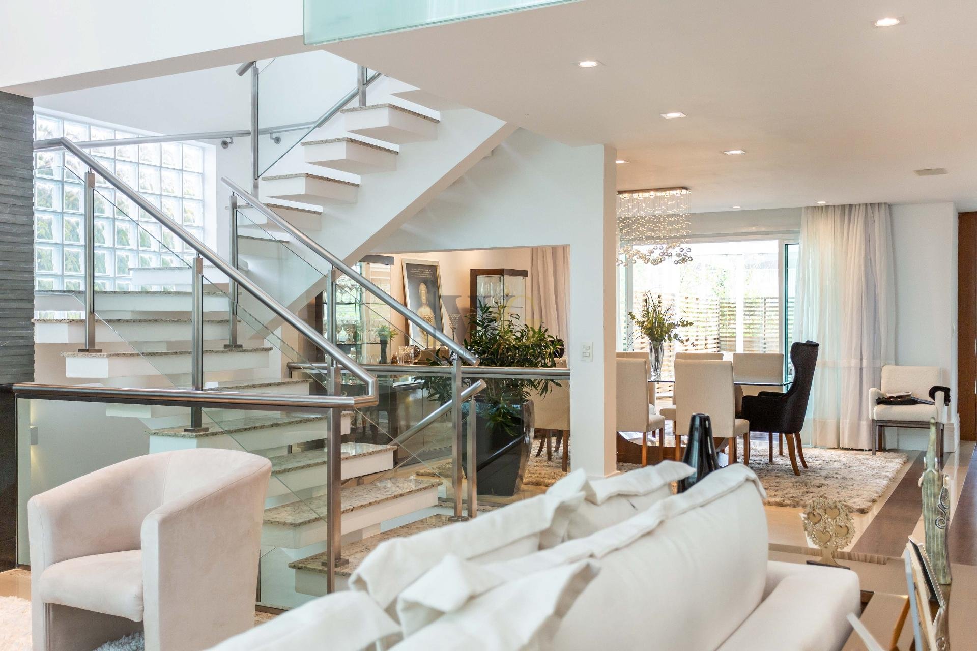 - Arquitetura sofisticada com pé-direito duplo, janelas panorâmicas e integração total entre os ambientes.