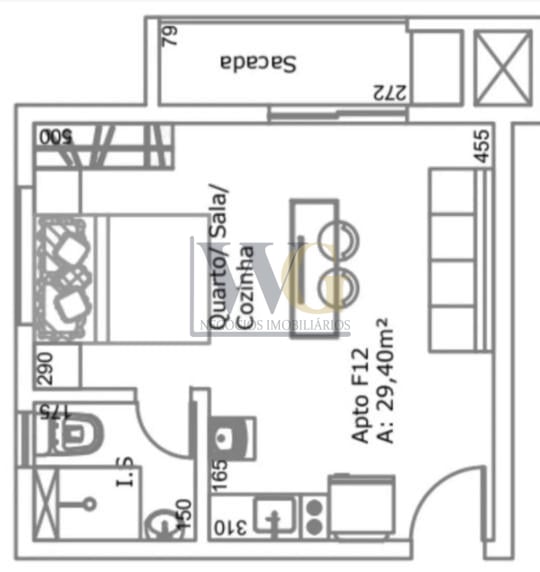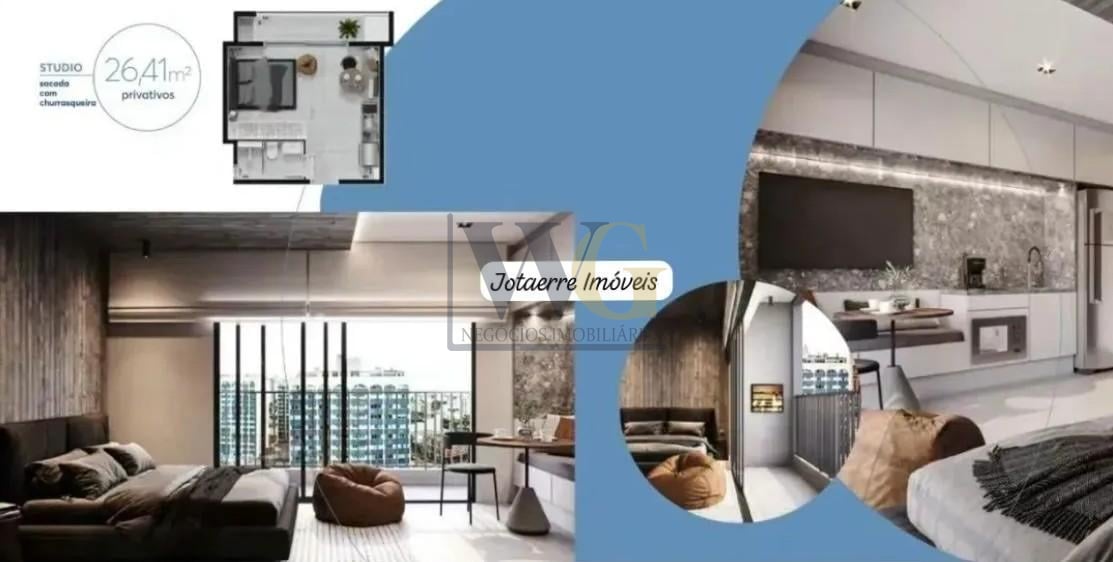 Stúdio 29,38 m com sacada, churrasqueira e vista panorâmica no Água Verde